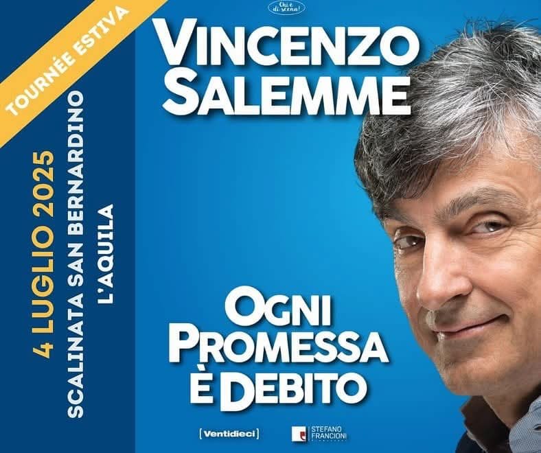 L’AQUILA – Prenderà ufficialmente il via venerdì 4 luglio alle ore 21:30, con lo spettacolo del celebre attore e regista Vincenzo Salemme, l’edizione 2025 dei Cantieri dell’Immaginario, la rassegna estiva che da oltre un decennio intreccia arte e spiritualità nel cuore dell’Aquila.