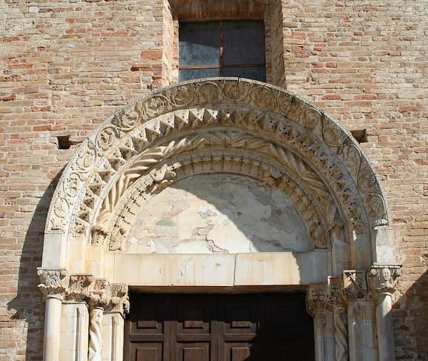 La Porta Santa si trova sul lato destro dell’Abbazia, allineata con la navata laterale sinistra, ma originariamente — come un’eco rimossa della storia — era posta dalla parte del coro. La sua eleganza silenziosa tradisce una nobile ascendenza: scolpita nel Trecento con la maestria di Raimondo del Poggio, lo stesso che firmò il portale laterale del Duomo di Atri nel 1302, si impone con il suo impianto architettonico tanto raffinato quanto austero.