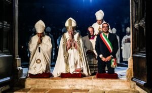 Il rito si è poi concluso con l’apertura della Porta Santa della Basilica di Collemaggio, con cui è iniziato il Giubileo celestiniano che si concluderà questa sera con il rito di chiusura della Porta Santa di Collemaggio, al termine della Messa stazionale, presieduta da Mons. Antonio D’Angelo.