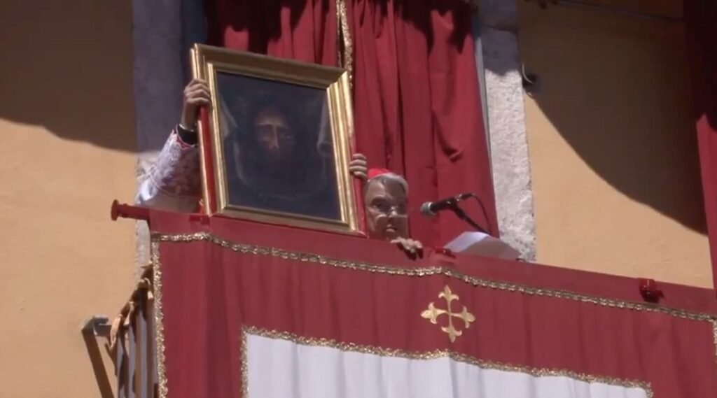 Il cardinale Marcello Semeraro, Prefetto del Dicastero delle Cause dei santi, ha presieduto a Tagliacozzo (L'Aquila) i riti della festa del Volto Santo a Tagliacozzo, una ricorrenza che si celebra da secoli nell'ottava di Pasqua o domenica in albis, da quando un principe di Casa Colonna donò al suo feudo di Tagliacozzo il dipinto con l’immagine del Cristo sofferente impressa sul velo della Veronica. La tela è ancora oggi custodita dalle Monache benedettine del Monastero dei Santi Cosma e Damiano ed è al centro del cerimoniale religioso che si svolge durante la festa, rimasto immutato. I momenti culminanti sono la solenne processione per le vie della città, dove sono attesi, come sempre, migliaia di fedeli, la predica che non viene tenuta non durante la messa, ma sul loggiato dove avverrà la benedizione e infine la solenne benedizione attraverso l’esposizione dell'effigie del Volto Santo.