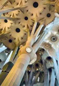 Questa visione impregna ogni sua opera. Casa Batlló, Park Güell, Casa Milà – e naturalmente la Sagrada Família – non sono solo espressioni di un genio architettonico fuori scala, ma tentativi di rendere visibile l’invisibile. Le forme organiche, le torri spiraliformi, le luci filtrate dalle vetrate colorate: tutto in Gaudí è liturgia. Ogni dettaglio ha un senso, un simbolo, una radice teologica.