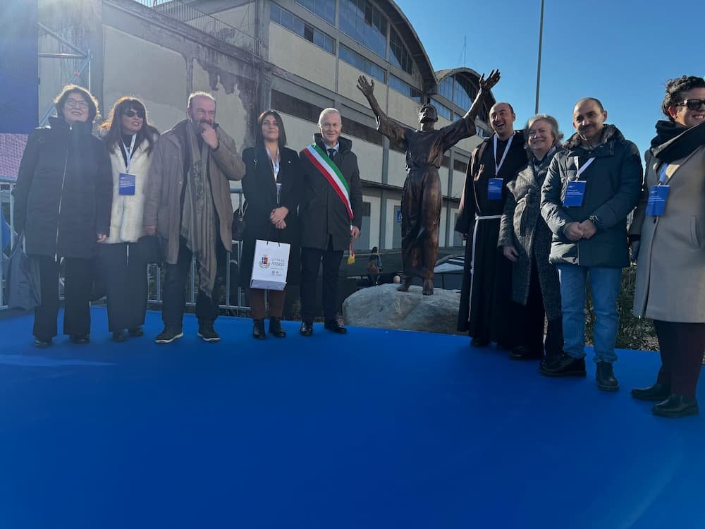 Sono intervenuti all’importante cerimonia e benedizione: il Sindaco di Roma, Roberto Gualtieri; il Ministro delle Infrastrutture e dei Trasporti, Matteo Salvini; Davide Rondoni, Presidente del Comitato per i Festeggiamenti; Claudio Andrea Gemme, Amministratore Delegato di ANAS; il Presidente ANAS, Giuseppe Pecoraro; il Sottosegretario alla Presidenza del Consiglio dei Ministri, Alfredo Mantovano; il Vicario di Sua Santità per la Diocesi di Roma, Sua Eminenza il Signor Cardinale Baldassarre Reina, il quale ha benedetto la scultura; una rappresentanza dei Frati Francescani.