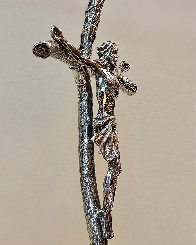 Lo stile è inequivocabilmente scorzelliano. La foggia richiama la celebre ferula ideata da Lello Scorzelli per Paolo VI, ma non si tratta di una copia. È un’opera con differenze ben calibrate che la rendono unica e coerente con l’identità di Leone XIV. La scelta iconografica del Christus Triumphans si inserisce pienamente nella Tradizione della Chiesa, tanto quanto quella del Christus Patiens. È il Cristo che regna dalla Croce, che vince nel dono totale di sé: un messaggio potente, sobrio, profondamente liturgico. Proprio questo equilibrio tra forza simbolica e misura formale ha colpito molti osservatori, raccogliendo reazioni soprattutto molto positive per la capacità di rinnovare senza “strappare”.