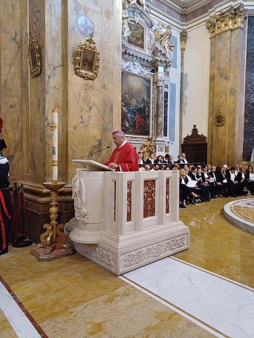 L’Arcivescovo – in questo solenne giorno di festa – ha consegnato alla Città e all’Arcidiocesi la vocazione cristiana impregnata della logica del seme, così come ci veniva rivelato dalla pagina del Vangelo: «Se il chicco di grano caduto in terra non muore, rimane solo; se invece muore, produce molto frutto» (Gv 12,24); nella logica di chi dona la vita, collaborando alla redenzione universale, secondo le parole delle sante Scritture: «Benedico il Signore che mi ha dato consiglio; anche di notte il mio animo mi istruisce. Io pongo sempre davanti a me il Signore, sta alla mia destra, non potrò vacillare. Per questo gioisce il mio cuore ed esulta la mia anima; anche il mio corpo riposa al sicuro, perché non abbandonerai la mia vita negli inferi, né lascerai che il tuo fedele veda la fossa. Mi indicherai il sentiero della vita, gioia piena alla tua presenza, dolcezza senza fine alla tua destra» (Sal 16/15).