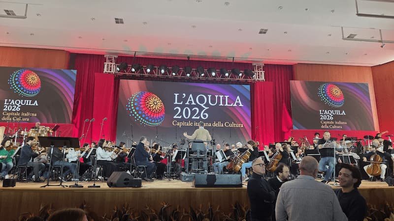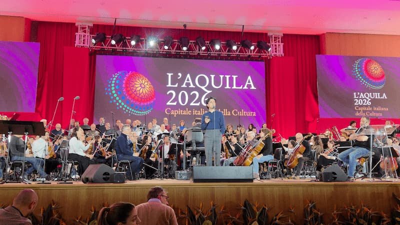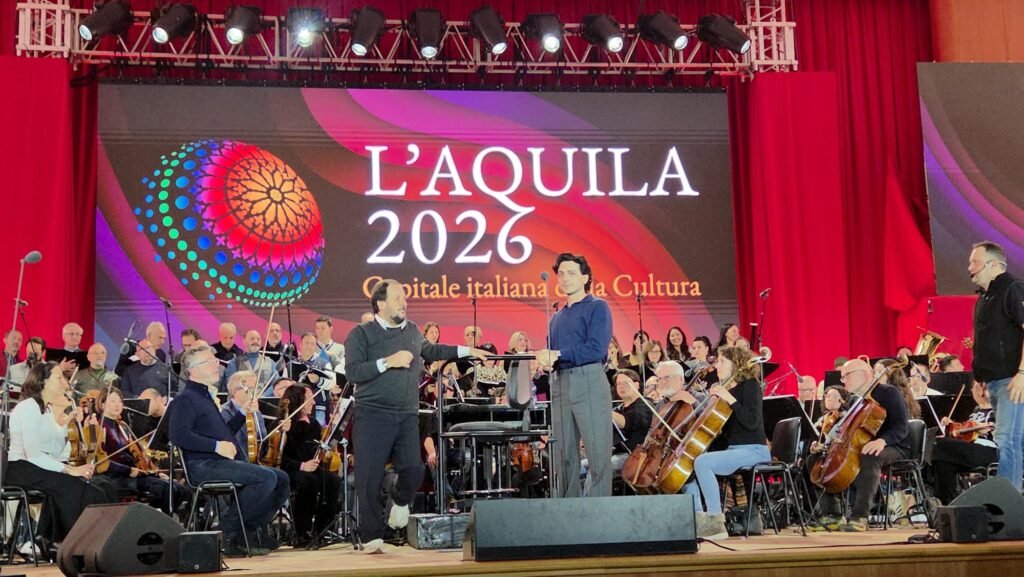 È questo il clima che si respirava ieri sera all’Auditorium della Scuola Ispettori e Sovrintendenti della Guardia di Finanza, durante le prove generali dell’evento inaugurale che tra poche ore aprirà ufficialmente l’anno de L’Aquila Capitale italiana della Cultura 2026.