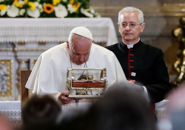 Papa Francesco e la reliquia di Santo Stefano d'Ungheria